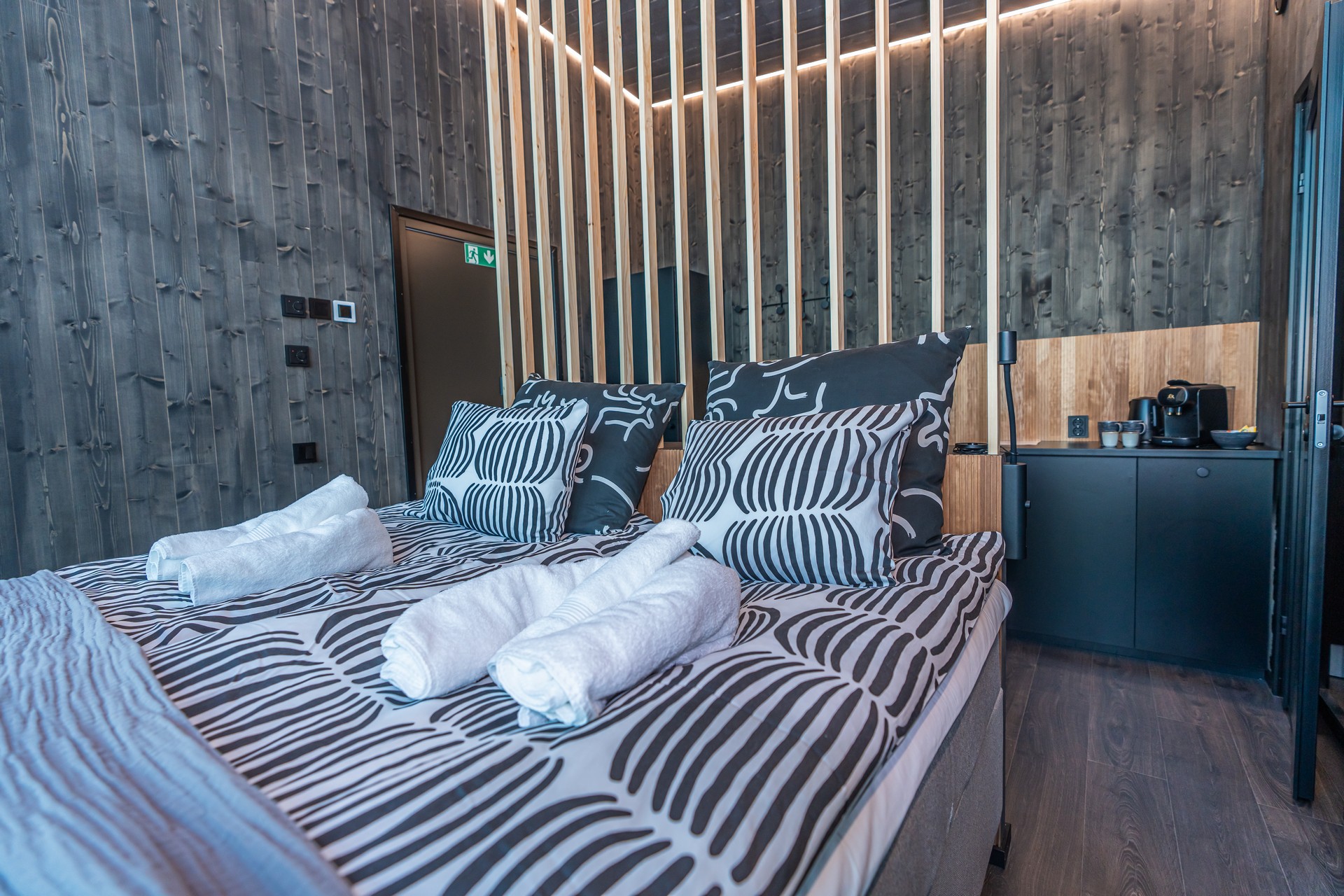 Every Gem has 1 double bed and 1 sofa bed, max 2 adults and 2 children in each Gem. Both rooms facing panoramic windows.