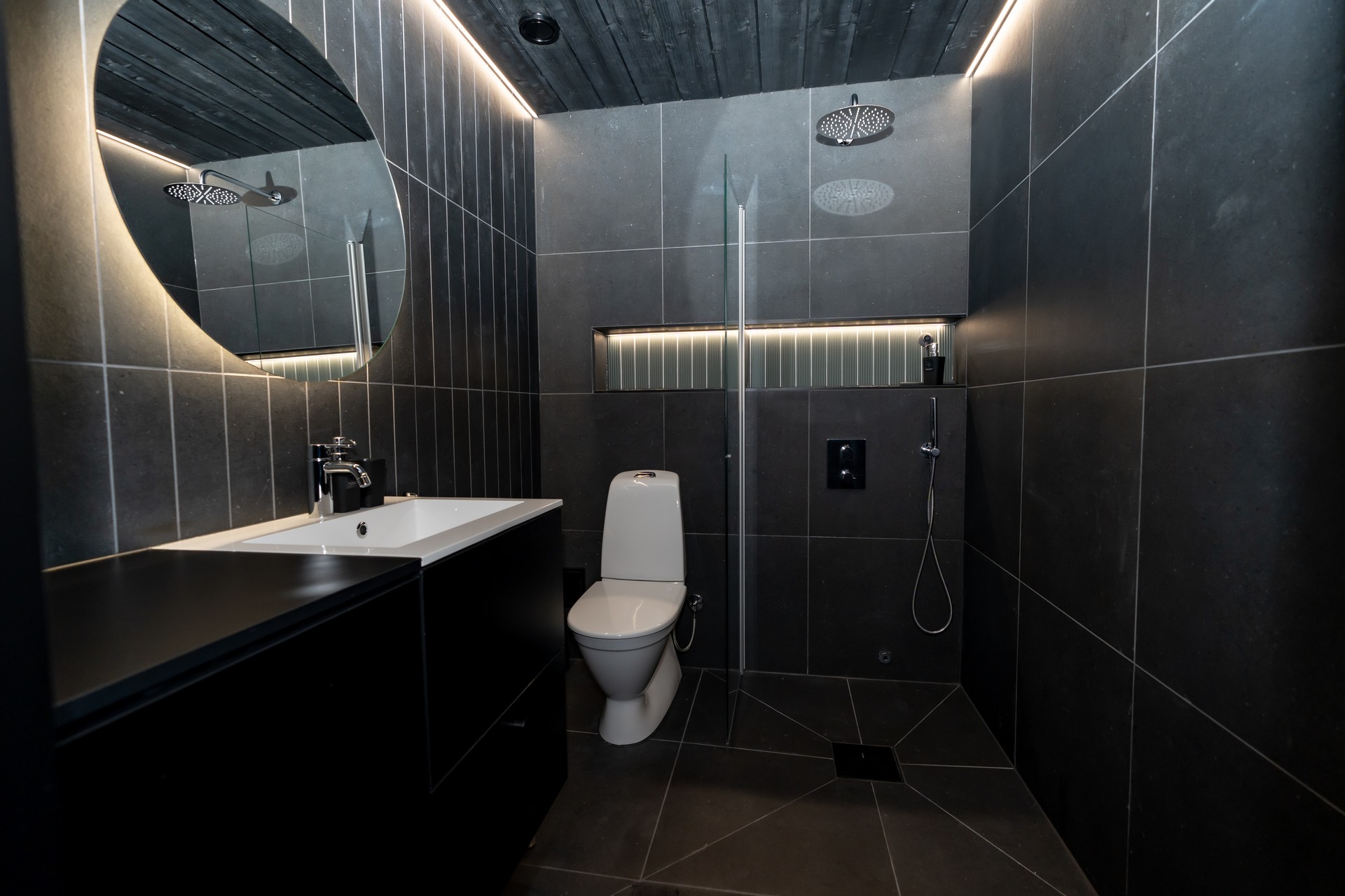 We also like space, as much as you like it. Spacious entrance, bed area facing North, toilet with shower and a cosy Aurora room, also facing North.