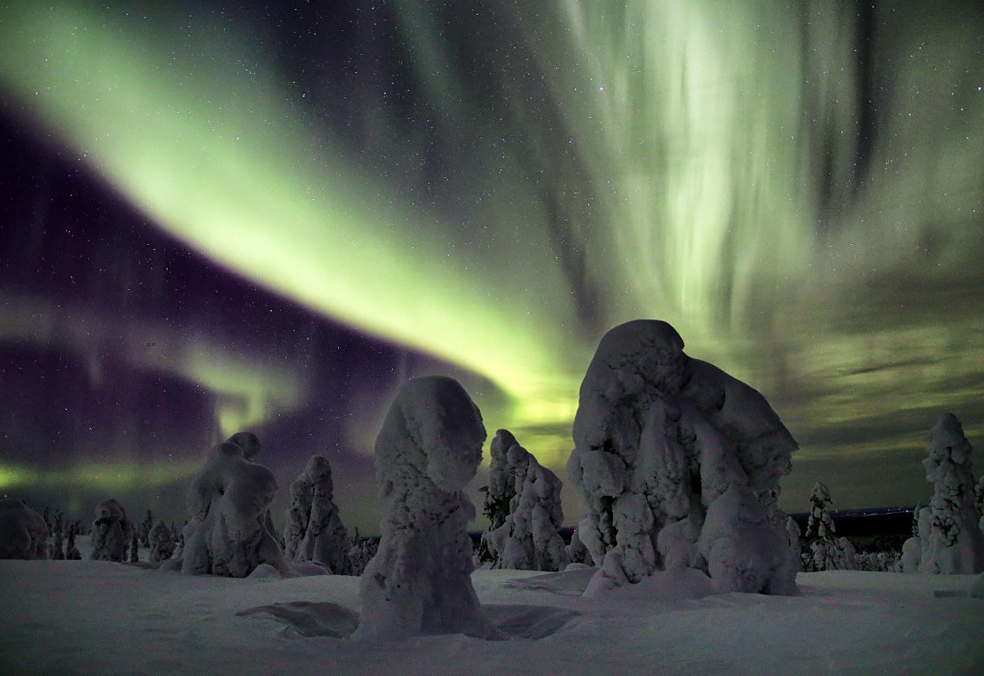The Posio area, where the resort lies, is considered one of the most environmentally sustainable destination in Finland. It is the very first destination awarded the "Sustainable Travel Finland Certification". This is the reason why we decided to build our resort here. In Posio you’ll find your own rhythm among the endless landscapes, and the snow-capped forests will inspire the artistic visions inside you. Spend a slow day admiring the work of world-famous sculptors, cruise around the forests with snowmobiles or dog sledges, venture in the forests surrounding hundreds of lakes and much more.